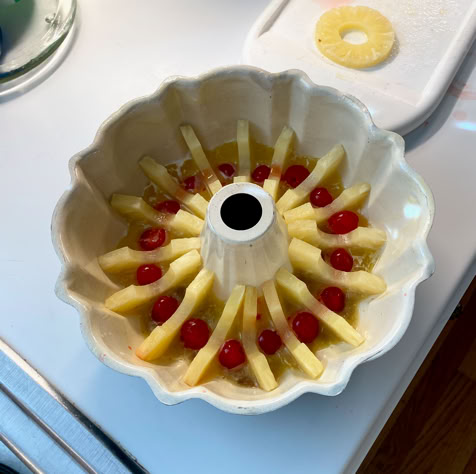 My Mom would make pineapple upside-down cake on special occasions. She would use a rectangular baking pan and the cake would always come out beautiful and delicious. This recipe is one that I found that makes a great looking, moist, and delicious cake. It quickly became a family favorite. I use the sugar-free version of the cake mix and the instant pudding.